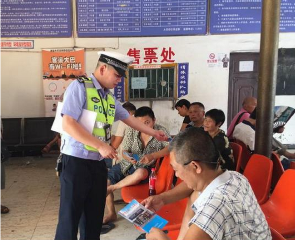 活动中,民警杨跃勇向广大乘客讲解了典型交通事故案例及预防措施,并发放了交通安全宣传手册。提醒广大乘客不要搭乘病车、非客运车及超员车,告诫其在走亲访友时千万不要酒后驾车、无牌、无证驾驶。在宣传交通法律法规的同时,民警认真倾听群众对公安交管工作提出的意见和建议,仔细解答群众提出的各类交通管理实际问题,并帮助解决群众在办理交管业务方面遇到的实际困难。 通过此次活动,使广大群众深深感受到了公安交警的亲切关怀,进一步牢固了警民和谐桥梁。(大英公安交警大队供图) |