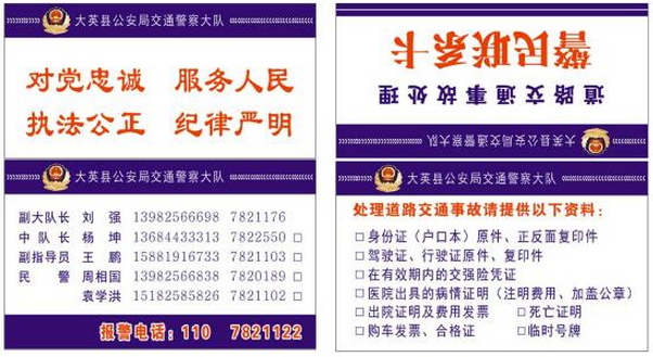大英公安交警大队通过给当事人发放警民联系卡、公开事故处理相关事宜、公开事故处理民警的联系方式,便于当事人知晓事故处理流程;为了方便当事人提供正确的事故处理资料,在警民联系卡印制了资料准备清单。大队要求事故民警在办理交通事故案件过程中,坚持以化解群众矛盾、换位思考的方法,做到将心比心,建立对等的沟通氛围,认真倾听当事人的陈述,在交流中充分体现办案警民和谐关系。 为进一步优化当前道路交通执法环境,大英公安交警大队要求在道路交通事故处理工作中,要严格按照快处理赔、简易程序、一般程序、告知程序、公开认定程序等相关法律程序,做到严格按照法定程序处理交通事故,切实提高当事人的满意度。 针对交通事故双方当事人对事故成因、违法事实、事故认定等存在的异议,要求事故民警要充分听取事故双方当事人的陈述和申辩意见,在对简易事故责任进行认定的同时,向当事人做好必要的法制宣传,让当事人弄清楚所承担的法律责任,以及享有的合法权益。坚决把矛盾化解在萌芽状态、解决在第一时间,最大限度的保障每一名当事人的合法权益。(大英公安交警大队) |