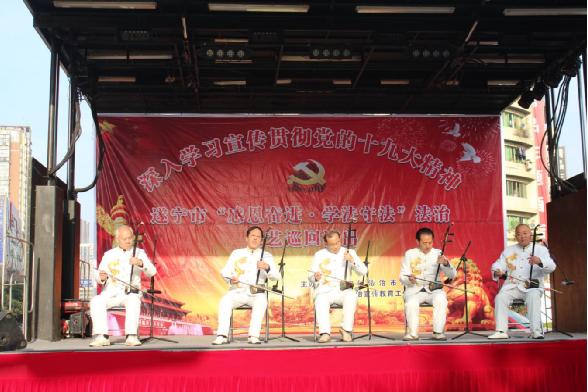 | 四川新闻网遂宁2月27日讯(兰向才)为学习贯彻党的十九大精神,掀起“尊法学法守法用法”热潮,让法治精神成为全民信仰,让法治成为全社会的共同意识和行为准则,让全体公民成为社会主义法治的忠实崇尚者、自觉遵守者和坚定捍卫者。2月24日上午,遂宁市“感恩奋进·学法守法”法治文艺巡回演出活动走进大英。
