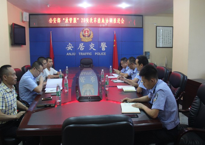 | 四川新闻网遂宁8月28日讯(兰向才)为进一步落实公安部20项交通管理“放管服”改革新举措,加快改革措施推进步伐,确保改革措施落地生效,近日,安居公安交警大队召开“放管服”20项改革措施协调推进会。车管所、特勤中队及相关业务负责人参加会议。会议由安居公安交警大队长张斌主持。