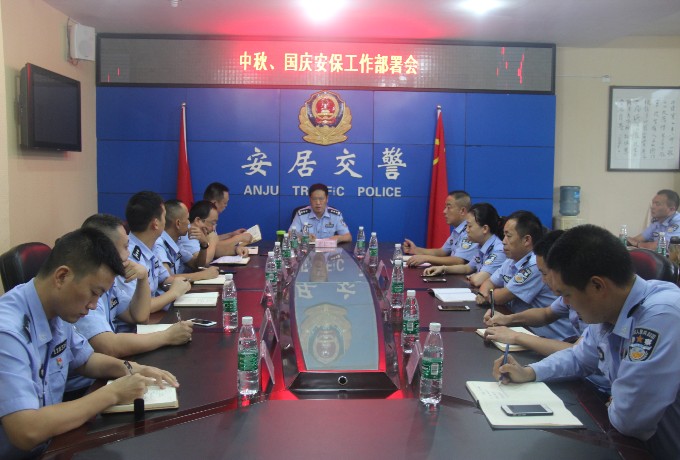 | 四川新闻网遂宁9月20日讯(夏雪梅)为做好中秋和国庆十天长假期间道路交通安全管理工作,严防重特大交通事故发生,切实维护人民群众生命财产和节日出行安全。9月18日下午,安居公安交警大队组织召开“中秋、国庆”期间交通安保工作部署会。会议由安居区公安分局政委邓长生主持。大队班子成员,部门负责人,各中队中队长参加了会议。