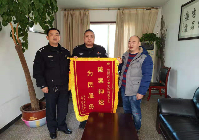 案件侦破后,受害人家属倍感欣慰,奉上“破案神速、为民服务”锦旗,称赞办案民警破案神速,终还逝者一个公道。