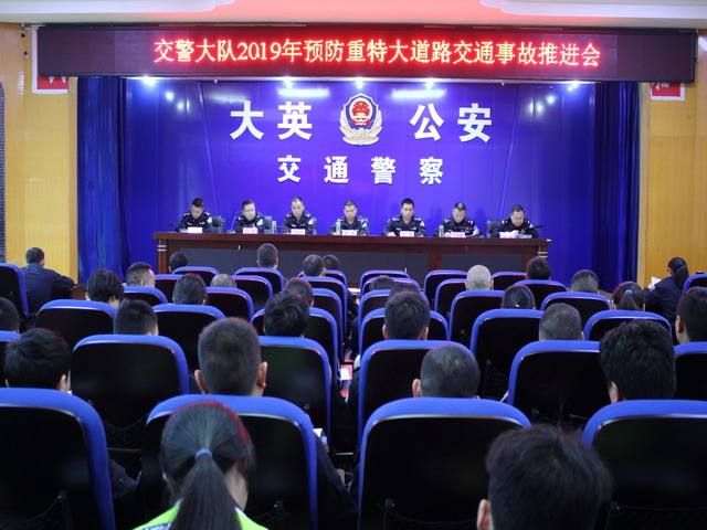 四川新闻网遂宁4月25日讯(袁小春)4月22日上午,大英公安交警大队组织召开预防重特大道路交通事故推进会,由大英公安交警大队长胡杰主持,全体民警、职工、辅警参会。