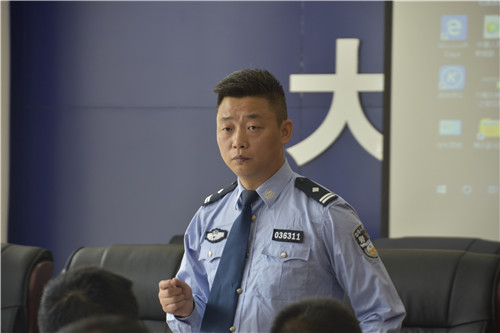 四川省公安厅教官组成员、大英县公安局副局长王杨。此次会议,王杨副局长开展教学,详细讲解了如何规范执法行为,提高办案质量。他指出,要深化落实执法规范化,提高办案质量和执法水平,就必须充分运用好执法记录仪等执勤执法装备,保护民警执法安全;同时要进一步转变执法观念,针对当前执法办案存在的问题,列举典型案例,加深民警对规范办案的理解和认识;三是要转变纪律作风,加强政治理论及业务知识的学习,防微杜渐,防患于未然。