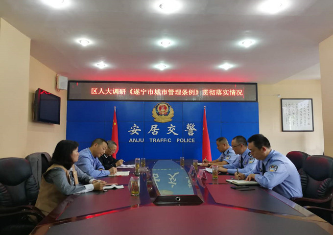 调研中,朱昌建一行实地查看了城区道路交通管理情况,提出了停车不规范、电动三轮车非法载客、标志标线模糊不清等问题,听取了张斌关于交警大队贯彻落实《遂宁市城市管理条例》的工作汇报。在座谈会上,朱昌建副主任就如何深入推进《条例》落到实处提出了相应要求。