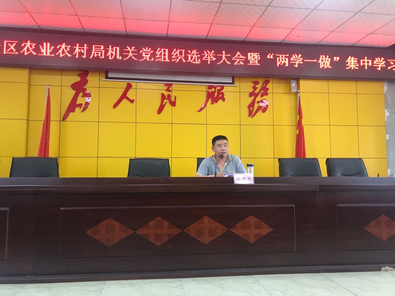 四川新闻网遂宁5月29日讯(杨英)日前,遂宁市安居区农业农村局举行机关党组织选举大会暨“两学一做”集中学习会,安居区农业农村局党组成员陈才彬主持召开机关党总支部、机关第一支部、机关第二支部等机关党组织选举大会,大会应到党员54名,因公因事因病请假10名,实到党员44名。