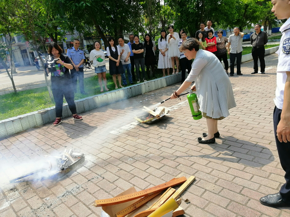 田江湖教官还对灭火器的使用进行了详细的讲解,并指导大家使用灭火器,还让参加讲座的干部职工依次进行了操作演练。