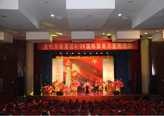 四川新闻网遂宁6月26日讯(袁方绪)6月25日,遂宁市安居区举行“拒毒防毒、禁毒摘帽、全民参与、人人有责”为主题的“6.26”国际禁毒日宣传文艺汇演,省禁毒办常务副主任、省公安厅禁毒缉毒总队长梁小辉,市人大常委会副主任施瑞昶,副市长、市公安局局长、市禁毒委常务副主任徐承,区委副书记、区长、区禁毒委主任吴军出席活动。