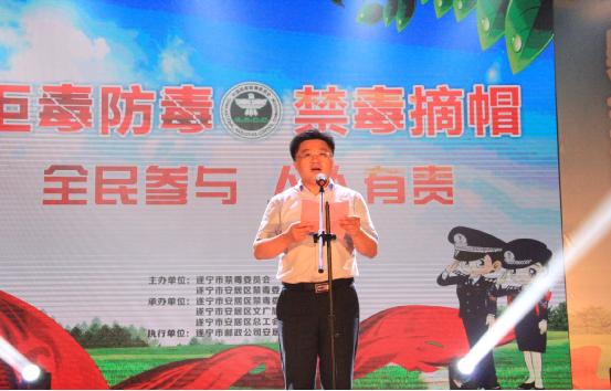 受区委书记管昭的委托,吴军在致辞中,代表区委、区政府号召全区各级各部门和广大人民群众牢固树立禁毒工作一盘棋思想,加大制贩毒、吸毒的打击力度,抓好禁吸戒毒工作,广泛开展禁毒宣传活动,积极主动参与禁毒斗争,坚决打赢这场禁毒人民战争,为建设平安安居而努力奋斗。