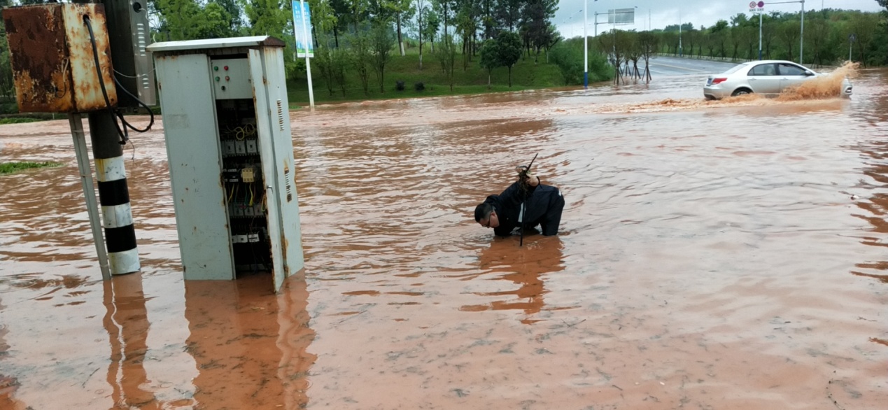 四川新闻网遂宁7月23日讯(袁方绪 黄豆)7月22日下午,安居区遭遇了强降雨天气,城区多处路段积水,安居区综合行政执法局第一时间启动应急预案,该局领导带领市政工作人员、执法队员立即奔赴现场,查看雨情,现场指挥紧急排涝。