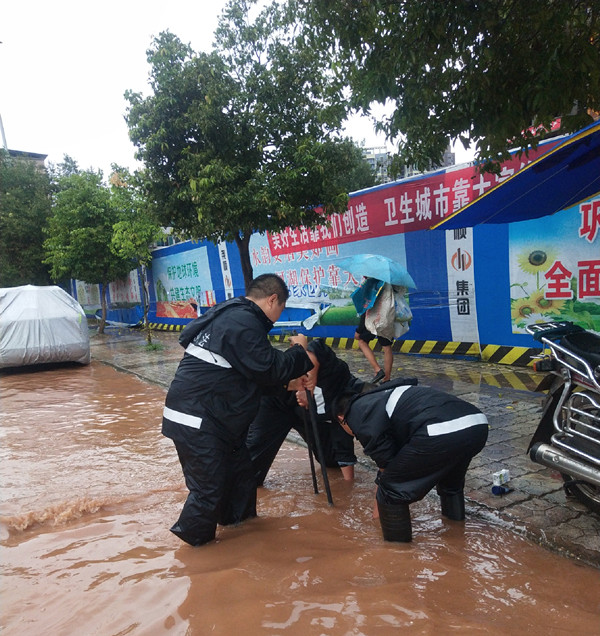 为确保在第一时间排除险情,安居区综合行政执法局人员迎着暴雨,涉水前行,逐一对城区各路段井盖等市政设施进行全面排查,打开积水点漏水篦、井盖,徒手清理堵塞的垃圾。执法队员们顾不上辛苦,只为在最短时间内泄洪排险,以确保居民出行、车辆通行安全,充分发扬了坚守岗位的执法铁军精神。
