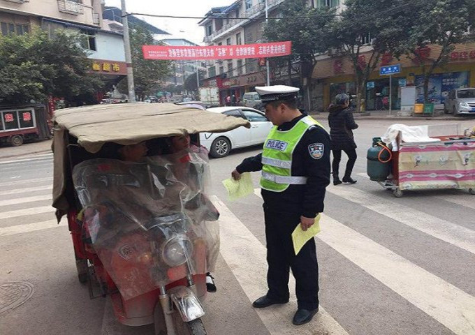 安居区公安交警大队组织宣传民警深入辖区头陀寺广场、和谐广场、三十米大街等人群密集区域向群众悬挂宣传横幅、发放宣传海报,广泛宣传交通违法行为的危害性,重点宣传乘坐非法营运三轮、四轮车的危害及后果,提高群众的交通守法意识、安全意识和文明意识。倡导群众配合执法,切实保障自身生命财产安全,通过“面对面、零距离”宣传教育警示活动,用真实的案例、惨痛的事实,以案说法,提醒广大交通参与者文明出行。大队充分利用大队微博平台、路面LED电子显示屏等媒介,向群众推送交通事故典型案例,广泛宣传非法营运三轮、四轮车的危害,提醒广大交通参与者共同营造安全、有序的道路交通环境,牢筑安全防线,营造浓厚的宣传氛围。(安居公安交警供图)