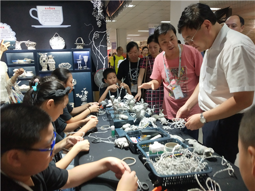 市教育局体艺科科长张佳霖陪同省专家指导工作坊 其中由遂宁市选送的大英县郪江外国语学校“废旧报纸创意艺术工作坊”在展评中脱颖而出。专家组一致认为,工作坊选题突出,展区布展新颖,学生参与性强,艺术作品精美,并能将旧物利用的绿色环保性和创意作品的艺术性有机融合,是真正的生活美学。展演期间,教育部体卫艺司艺术与国防教育处副处长陈蓓蓓、四川省教育厅副厅长崔昌宏、四川省教育科学院艺体室主任冯恩旭等纷纷到活动现场视察学校工作坊,对展评效果给予充分肯定。 |