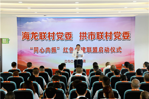 仪式现场,受安居区委书记吴军委托,安居区委常委、组织部部长李鸿桀代表区委、区政府向海龙联村和拱市联村的“强强联手”表示热烈祝贺!他指出,“同心共振”红色党建联盟的启动,是两地区域联动发展的新起点,成立“同心共振”红色党建联盟,是推动两地区域联动发展的有益探索,是践行新发展理念的生动实践,掀开了共建共赢、共谋共进的新篇章,描绘了携手同行、砥砺前进的新蓝图,具有里程碑的意义。