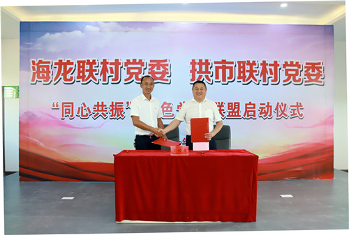 活动现场,蓬溪县拱市联村党委书记蒋乙嘉、安居区海龙联村党委书记熊建签订“同心共振”红色党建联盟合作协议。安居区委常委、组织部部长李鸿桀,蓬溪县委常委、组织部部长、县直机关工委书记唐明星共同为“同心共振”红色党建联盟授牌。