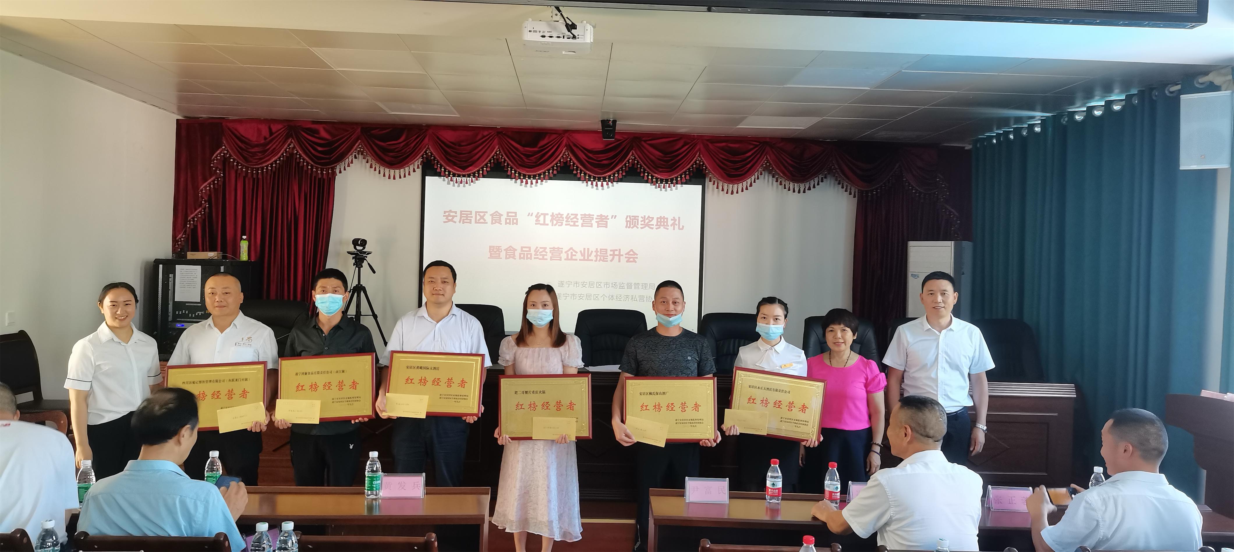 四川新闻网消息(袁方绪 李美丽)为鼓励食品经营者对标竞优,争创优秀,近日,遂宁市安居区市场监管局举行了辖区食品“红榜经营者”颁奖典礼暨食品经营企业提升会。由遂宁市安居区个体协会、安居区市场监管局授予表现优异的食品经营企业代表“红榜经营者”奖牌及奖励,同时倡导其他食品加工企业及小作坊学习“红榜”单位优秀做法,严格落实食品安全主体责任,提升食品安全整体水平。