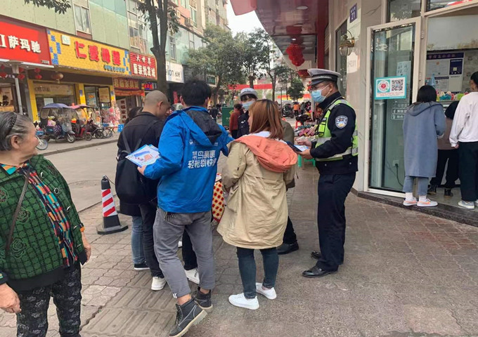 四川新闻网消息(袁方绪)为预防和减少道路交通事故发生,进一步提升摩托车、电动车驾乘人员和汽车驾乘人员安全文明交通意识,进一步深化“一盔一带”安全守护行动。10月31日,遂宁市公安局安居区分局公安交警大队加强警企联动,组织警力联合辖区寄递业共同开展“一盔一带”交通宣传活动,充分发挥重点行业示范引领作用,持续推进“减量控大”专项整治工作。