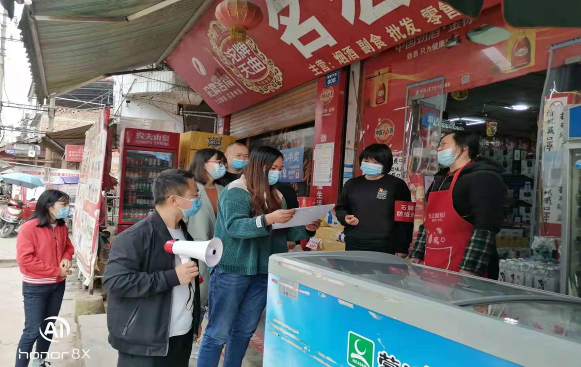图为石洞镇纪检监察干部督促疫情防控工作部署落细落实