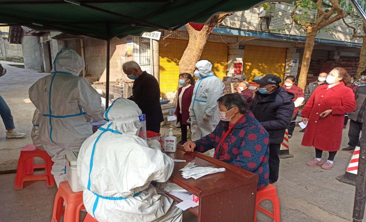 图为石洞镇纪检监察干部协助社区干部有序引导群众开展核酸检测,做到应检尽检