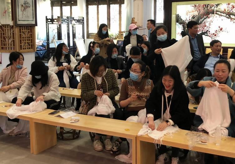 图为安潼毗邻乡镇部分女性干部在活动中体验非遗项目扎染