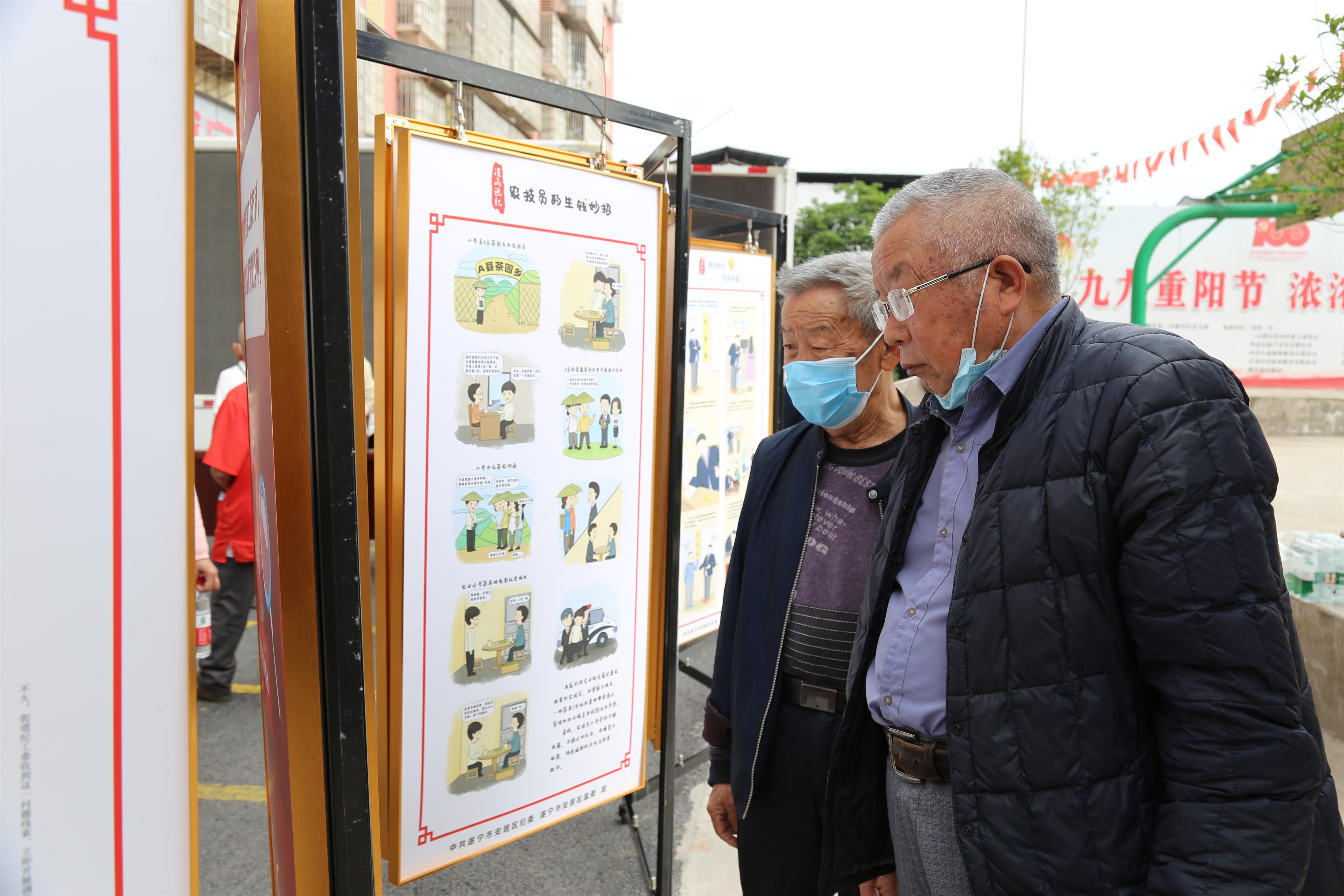 (图为安居区柔刚街道三合碑社区居民观看展览)