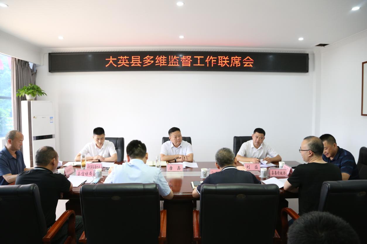 会议审定了《大英县多维监督工作联席会议制度》,讨论确定了本轮多维监督重点事项。会议要求,一要统一思想、高度重视,充分认识多维监督重要性。加强多维监督是一项创新性工作,实质上是加强各类监督的协同联动,在不改变各单位承担的职责和不改变现有工作框架的情况下,通过联席会议的统一安排,各成员单位充分履行各自监督职责,加强协调配合,形成监督合力,放大监督效能,使监督工作更加有力、更加精准、更加高效。二要聚焦重点、靶向发力,切实增强多维监督精准度。多维监督的目标,重在解决问题,推动任务落实。要紧紧围绕让广大党员干部习惯在受监督和约束的环境中工作生活的目标开展监督,促进服务更加高效、经济发展更加健康、政治生态更加清明、社会更加公平正义。三要协同配合、尽责履责,有效提升多维监督质效力。多维监督关键是提高监督协同性,要坚持以各监督主体为主,积极借用其他监督力量,实现各监督主体履职不缺位、尽责不推诿,同向发力、同频共振,努力取得监督成效的最大化。