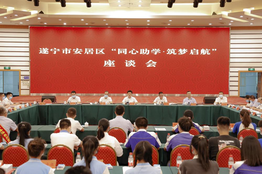 四川新闻网消息 7月18日,遂宁市安居区召开“同心助学 筑梦启航”座谈会,畅谈青春梦想、共话使命担当。中共安居区委书记吴军出席会议并讲话,勉励广大学子要深入学习贯彻省第十二次党代会精神,牢记殷殷嘱托,勇担职责使命,在百年新征程中担当时代大任书写最美篇章。
