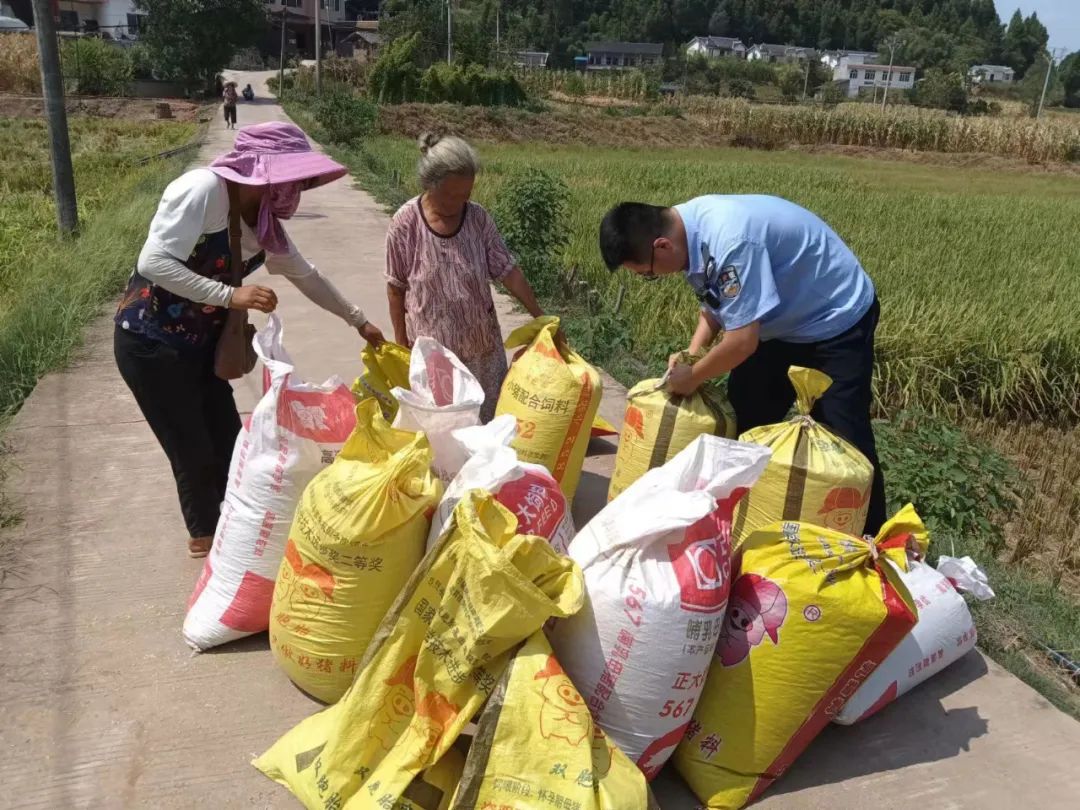 误会解开了,双方就继续收谷子。民警们却没有离开。他们看到老夫妇满头的大汗和湿透的衣衫,还有那烈日下烫手的一袋袋稻谷,不知道仅靠两位老人要多久才能搬运完。于是民警们一起行动,上前帮助两位老人把谷子捆绑好,再搬运到车上。在大家努力下,老人家的稻谷很快收拾完毕。(供稿:大英公安)