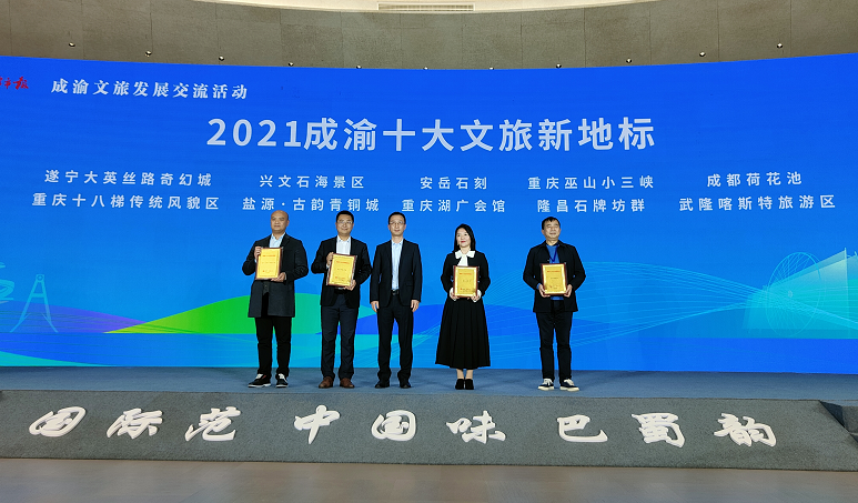 四川新闻网消息 (袁方绪 图/文)11月25日,成渝文旅发展交流活动暨“成渝十大文旅新地标”颁奖典礼在遂宁市大英县举行。经过一年评选,备受关注的“2021成渝十大文旅新地标”等六大重量级榜单,一一揭晓。